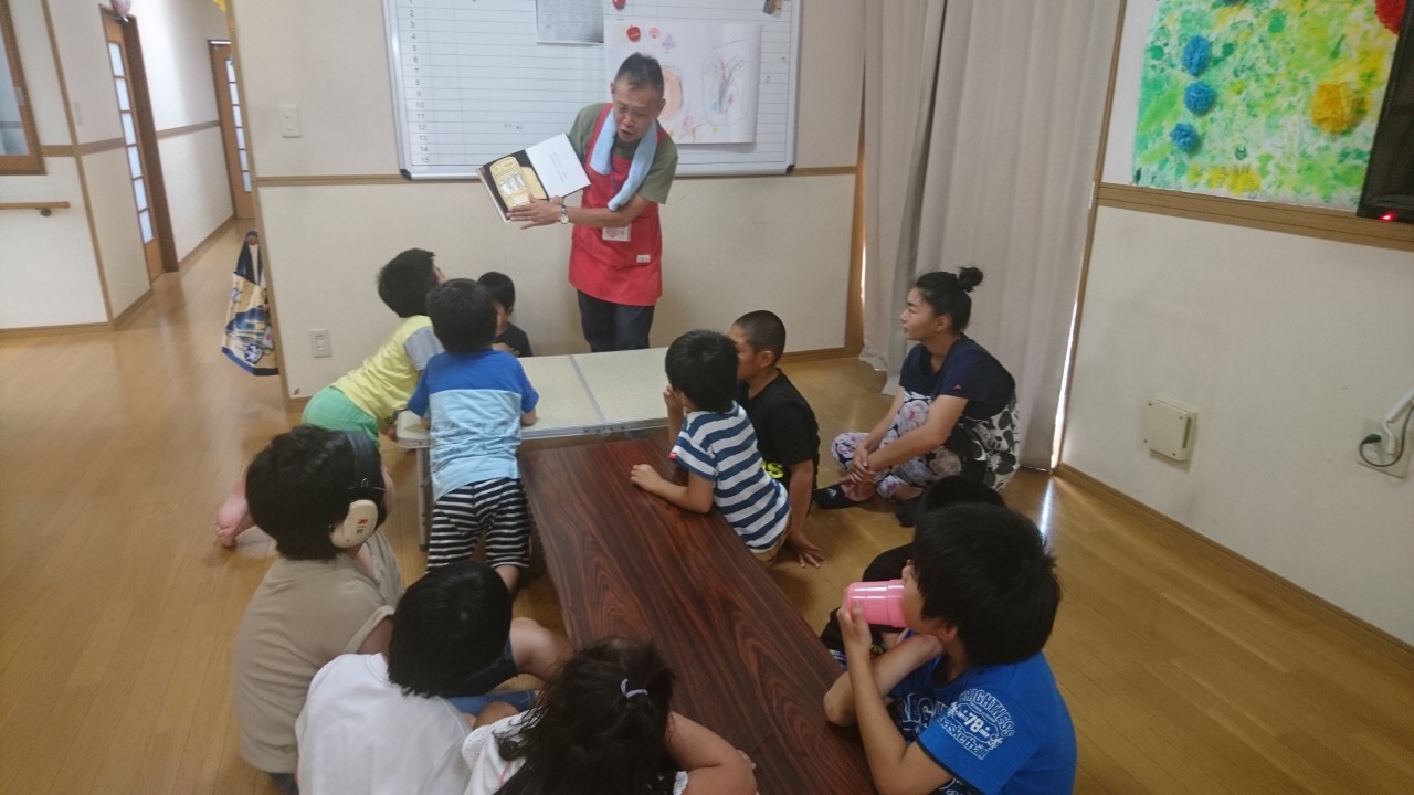 おやつの前には絵本の読み聞かせ♪子どもたち、話に聞き入っています!
